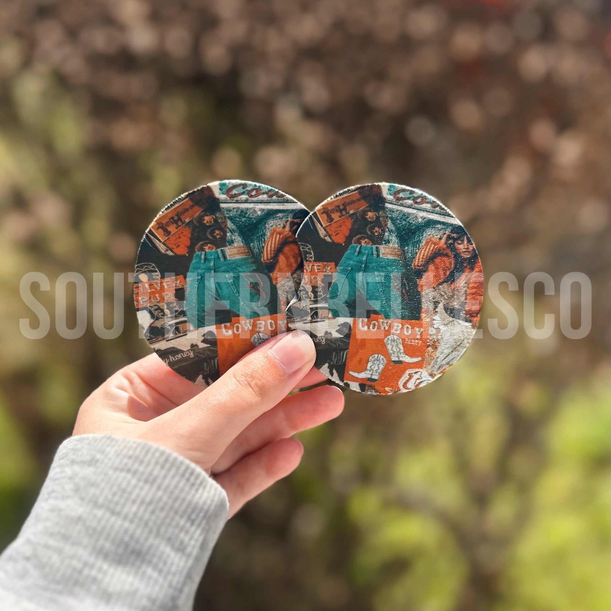 Cowboy Party Collage Car Coasters